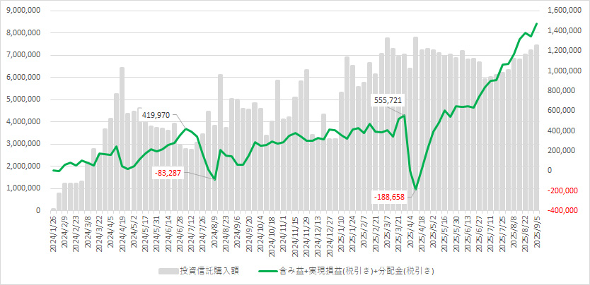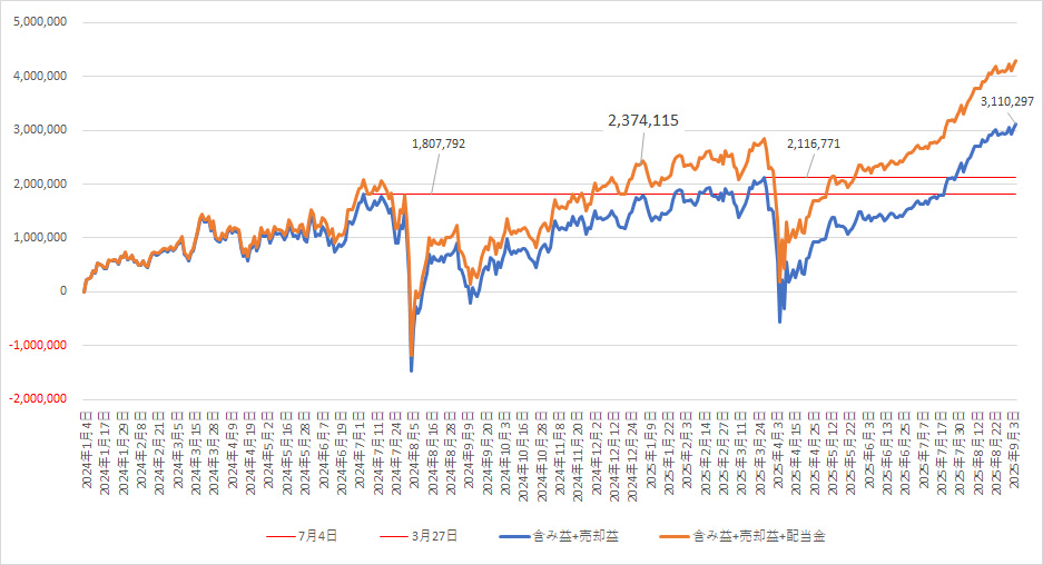 2024年1月から2025年9月5日までの日本株PFの推移です。