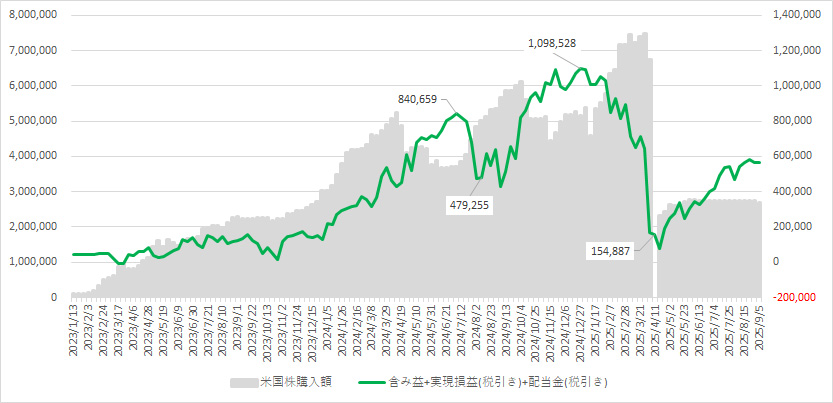 2024年8月の暴落の時は9月に二番底ぽいものがきて、そこで再び買い向かってそれなりの利益を得ることができました。ところが2025年4月の暴落に関しては二番底がこなくて、暴落時に買った銘柄を早めに売却したことで僅かな利益しか得ていません。