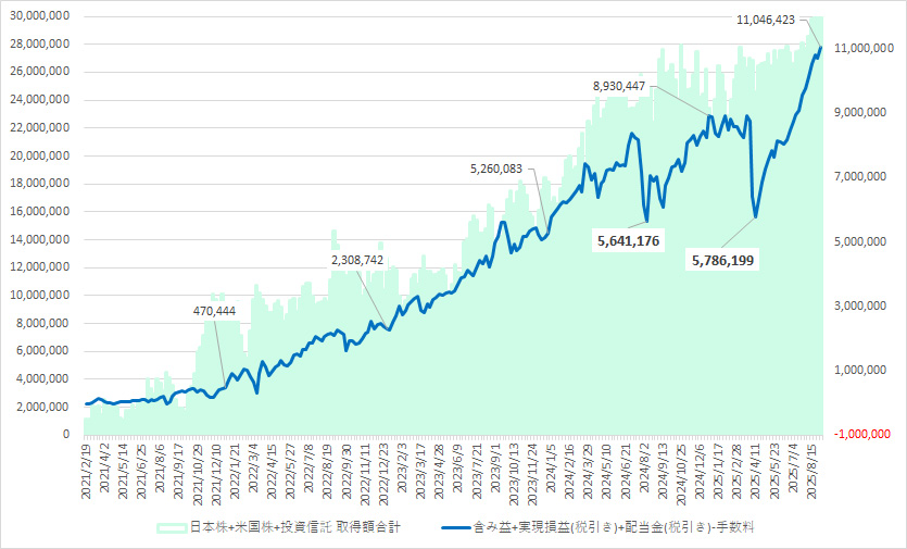 配当金(累積):2,344,901 円 先週比 +16,541 円 ※税引き後