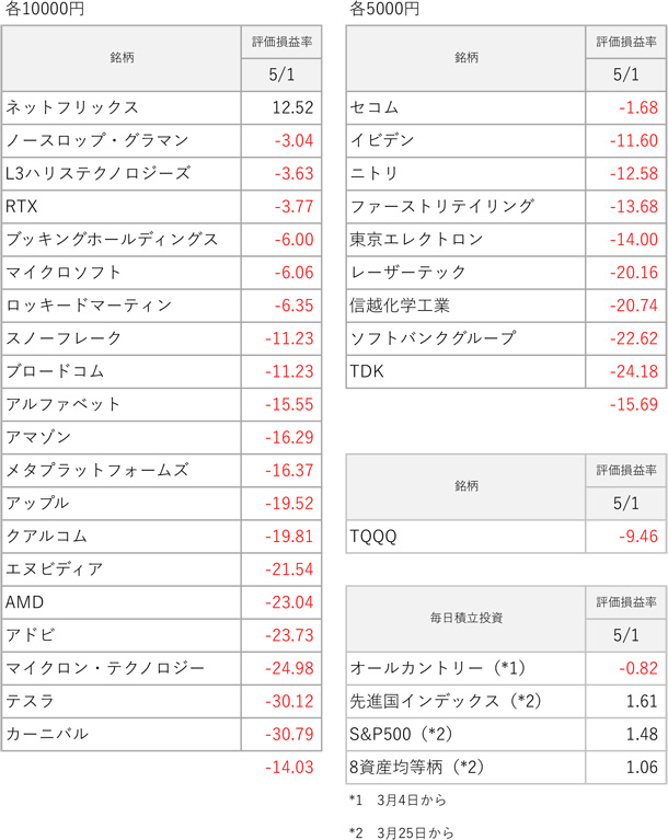 暴落時は売らずに気合で買い向かえば、その後の反転上昇で爆益かもしれませんが、今後も不安定な経済状況が続く可能性が高いため、これ以上の資金の投入は危険です。