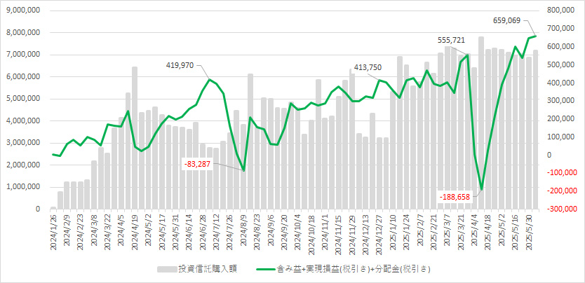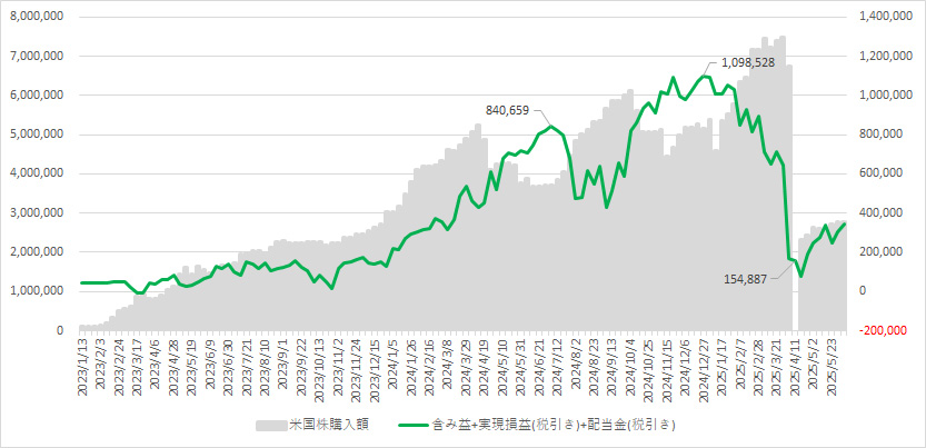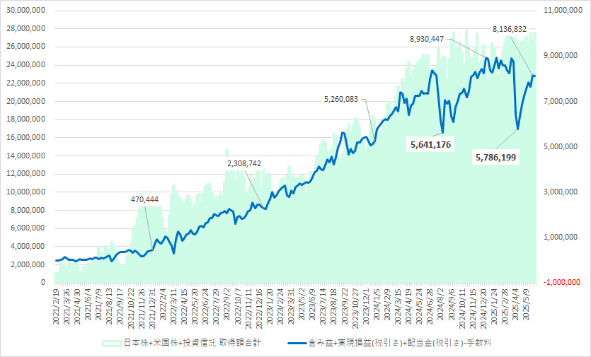 実現損益(累積):+4,754,131 円 先週比 +57,485 円 ※税引き後