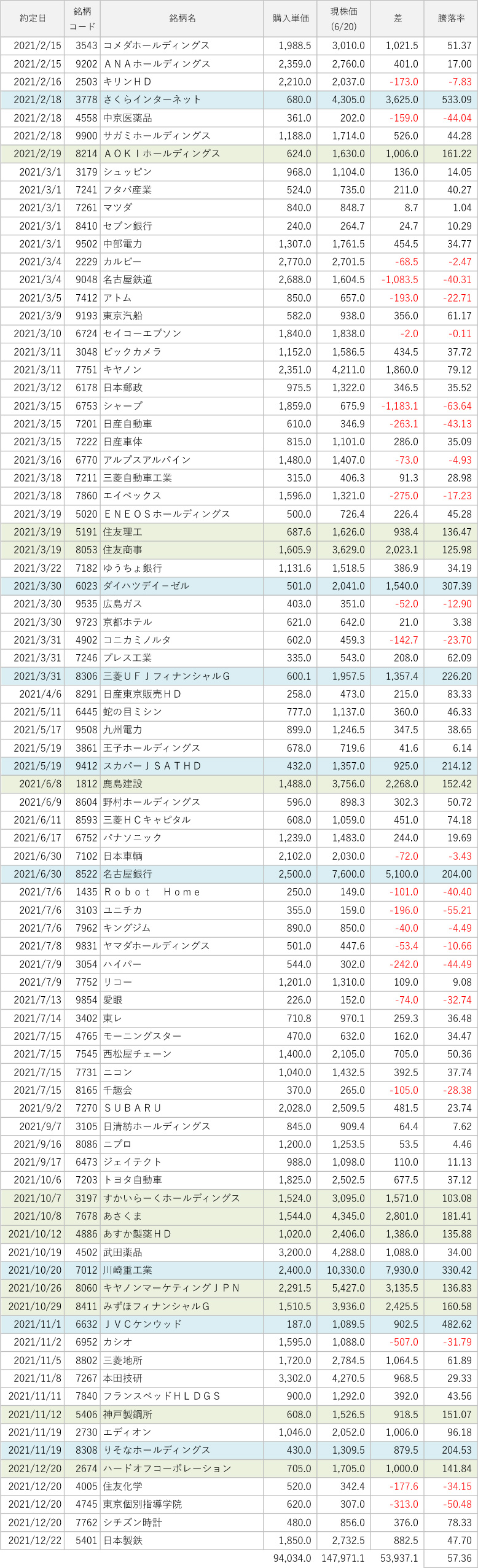 「2021年末までに買った銘柄」をピックアップしてみました。
