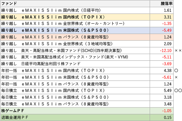 リストにある投資信託の損切りは「米国株20銘柄+日本株20銘柄」で始める前の迷走していた時期のものです。