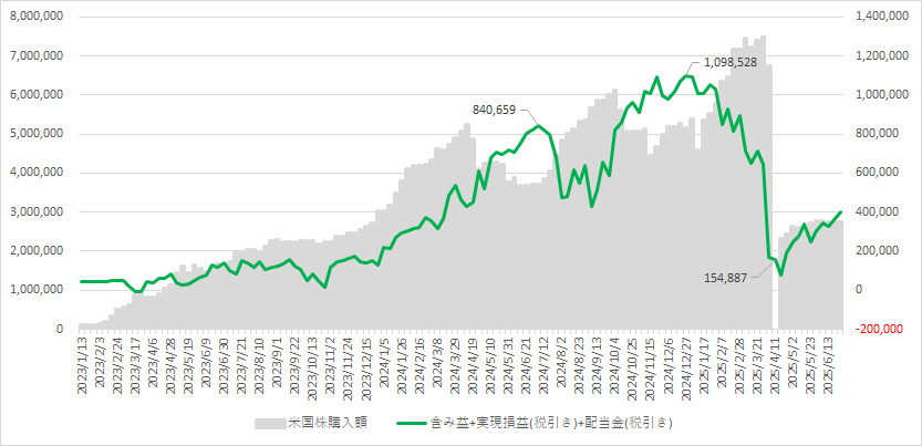 実現損益(累積):+4,874,893 円 先週比 +76,791 円 ※税引き後