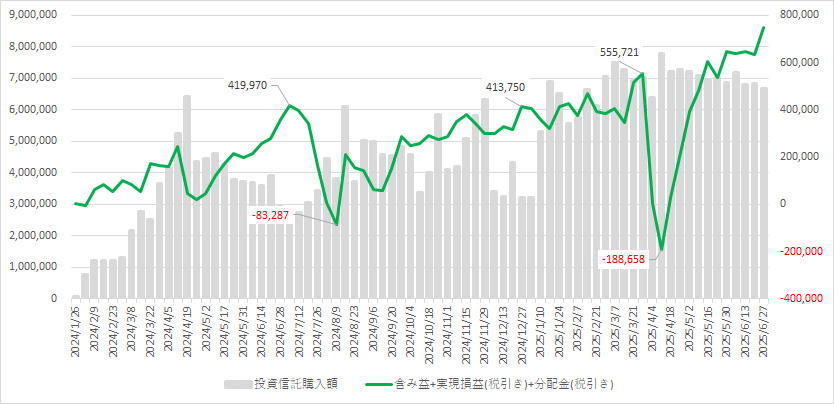 配当金(累積):2,147,204 円 先週比 +34,708 円 ※税引き後