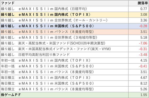 日本株PF+0.3065% TOPIX-0.19% 高配当50ETF-0.09%