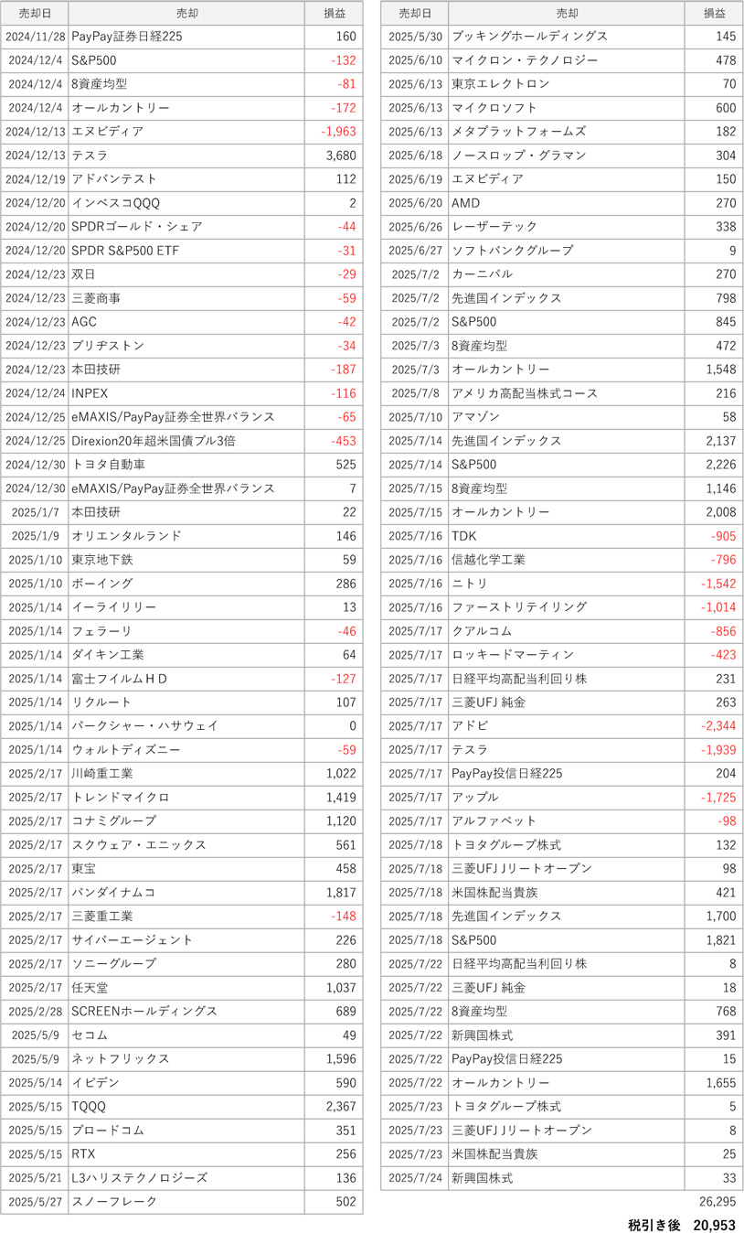 まずは売却リストです。