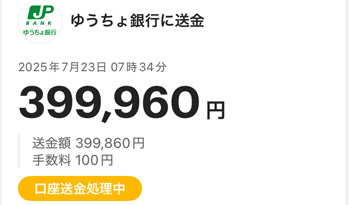 そして、ゆうちょ銀行に戻します。