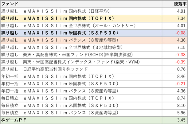 日本株PF-0.0528% TOPIX+0.06% 高配当50ETF-0.04%