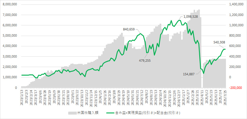 実現損益(累積):+4,978,020 円 先週比 +45,467 円 ※税引き後