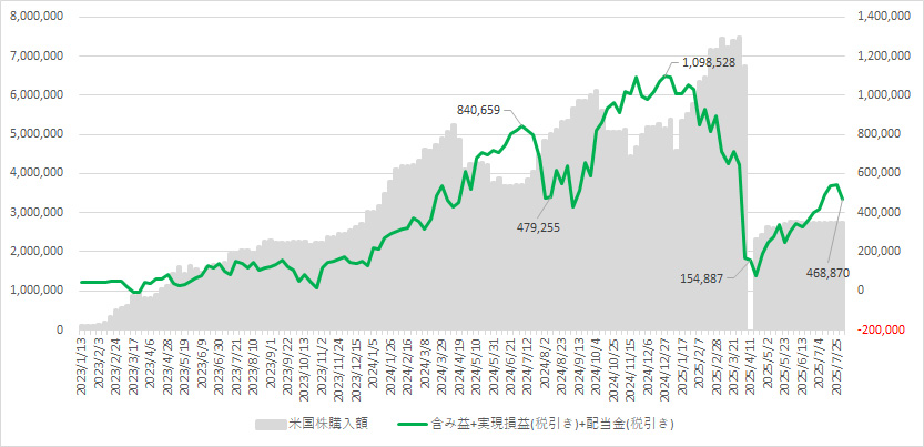 実現損益(累積):+4,996,658 円 先週比 +18,638 円 ※税引き後