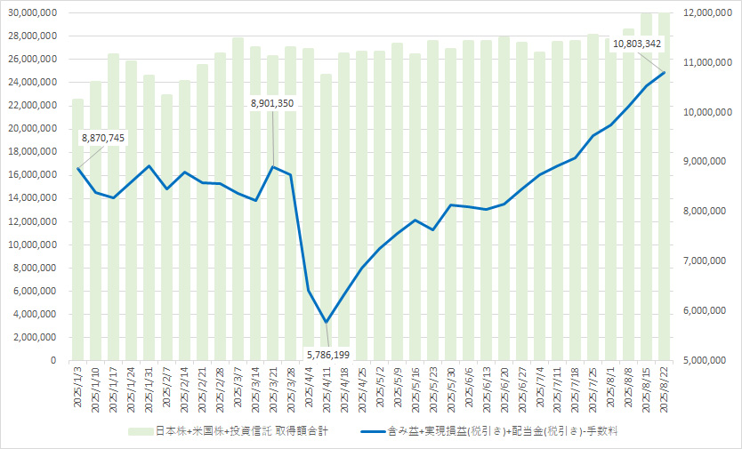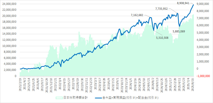楽天証券枠(日本株)+SBI証券(旧ネオモバ)枠 の推移グラフ(週)