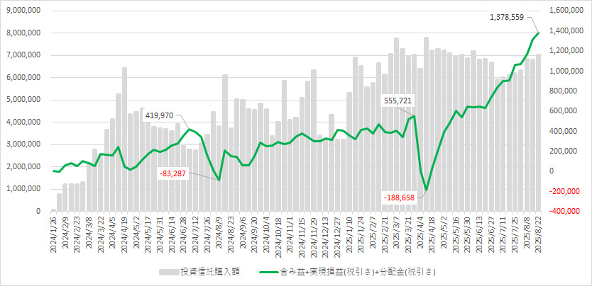 配当金(累積):2,317,497 円 先週比 +63,855 円 ※税引き後