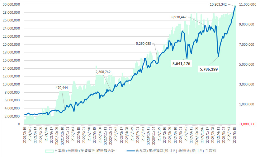 実現損益(累積):+5,061,201 円 先週比 +3,179 円 ※税引き後