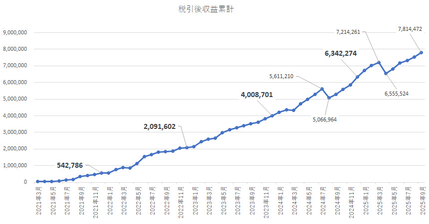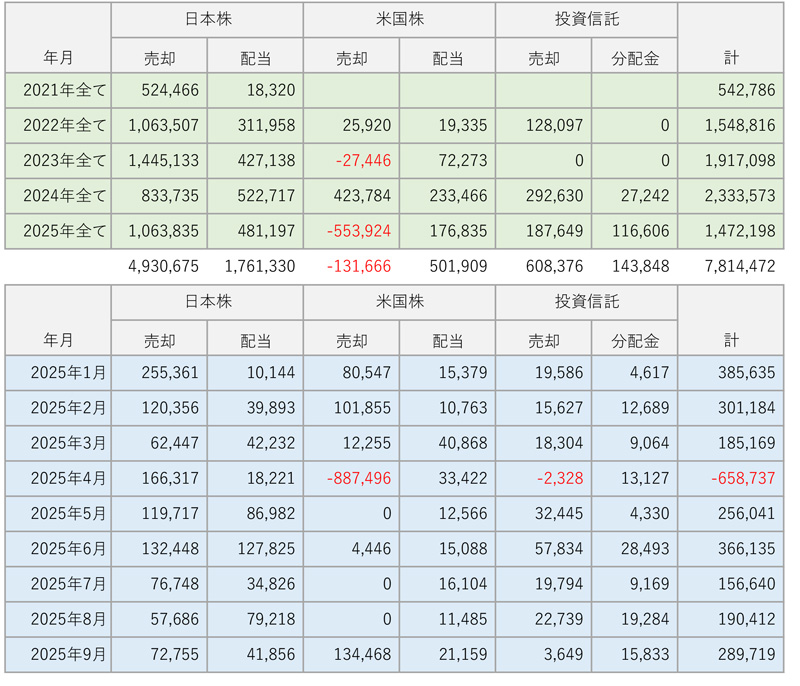 2025年9月度の確定利益は +289,719 円でした。(※源泉徴収後)