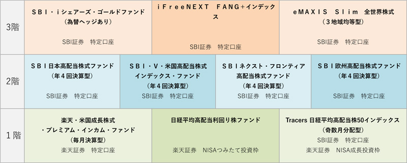 そして3階部分が70歳以降にまとまった資金が必要になった時に売却する枠です。ここも“毎日自動積立”で買っています。