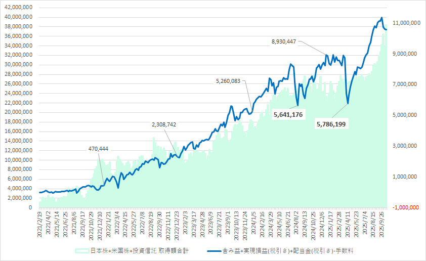配当金(累積):2,475,028 円 先週比 +37,167 円 ※税引き後