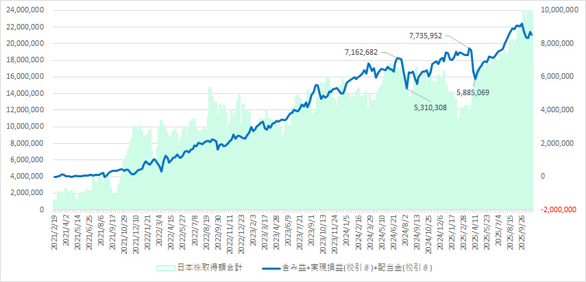 楽天証券枠(日本株)+SBI証券(旧ネオモバ)枠 の推移グラフ(週)