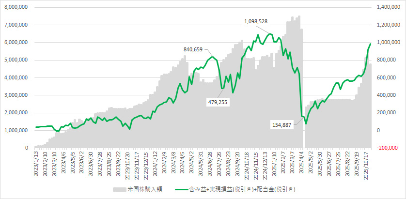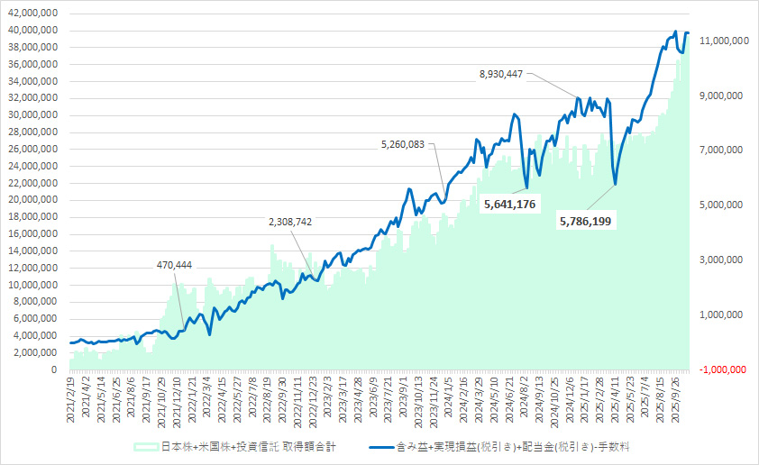 実現損益(累積):+5,748,797 円 先週比 +99,669 円 ※税引き後