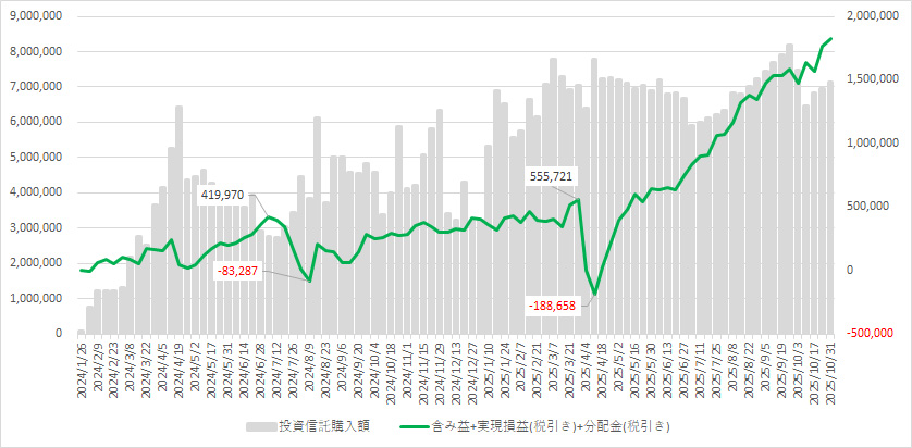 配当金(累積):2,479,780 円 先週比 +3,013 円 ※税引き後
