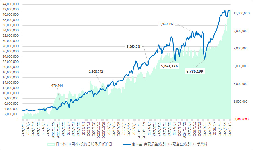 配当金(累積):2,508,263 円 先週比 +28,483 円 ※税引き後