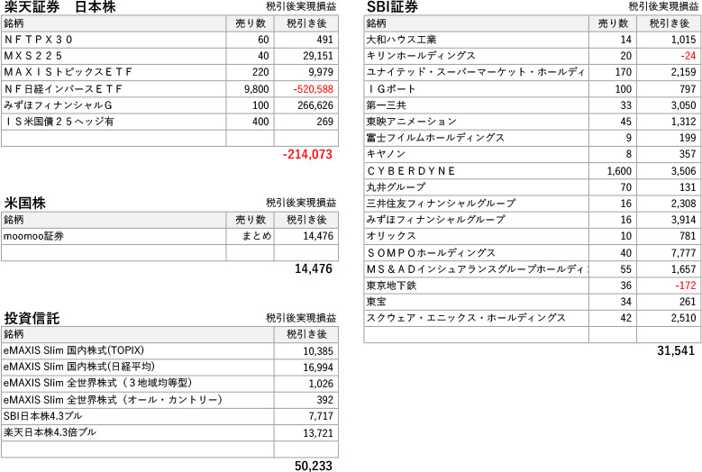 単純に「暴落に備えて日経インバを大量に買っておく」をやらなければ、日経インバの損失補填のための「みずほFG」の売却もなく、11月度の確定利益+334537円になっていたことになります。