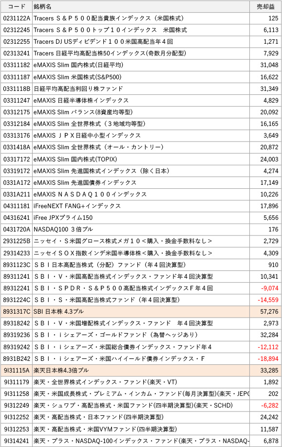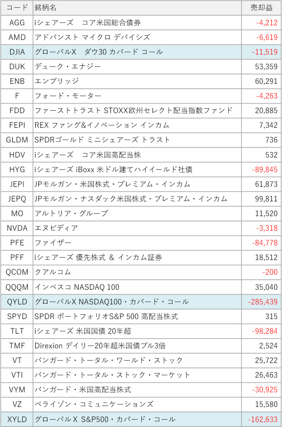 売却した日本株の201銘柄の全リストです。昨年までと同様に配当株や話題株をあれもこれも買いましたが、銘柄数が多すぎると下落期間中の買い増しが難しくなります。そして配当利回りに拘って選んだ銘柄ほど、ちょっとしたことで株価が大幅に下落するため9月以降は大型株に絞り、さらに個別株は長期目的ではなくスイングに特化させました。