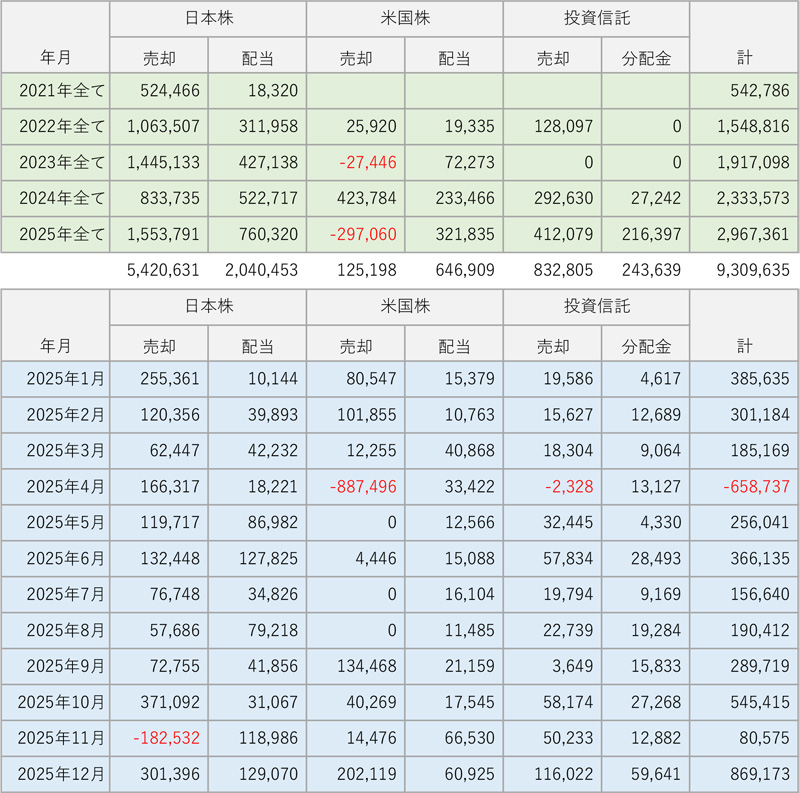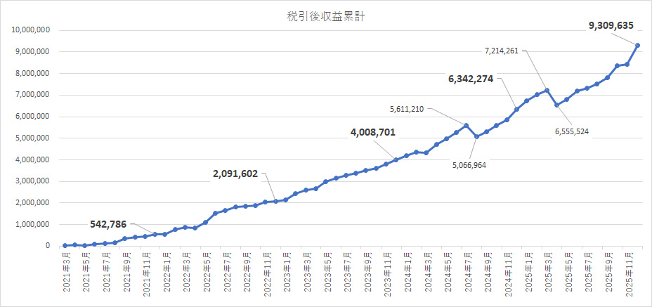 2025年12月度の確定利益は +869,173 円でした。(※源泉徴収後)
