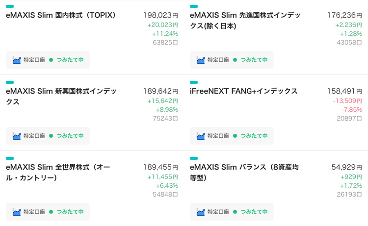 さて、PayPay証券の毎日自動積立ですが、検証も兼ねているため、現在は6本です。