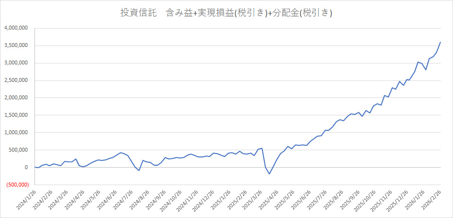 配当金(累積):3,200,136 円 先週比 +74,237 円 ※税引き後