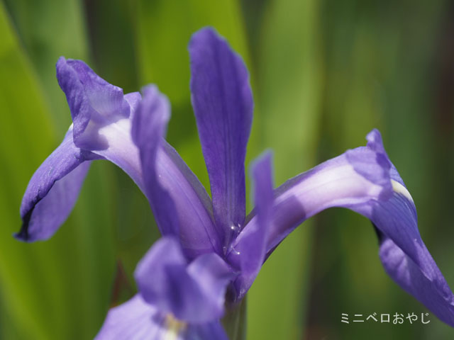 背景にカキツバタの群生がくるように配置してみました。妙にゴミが写っていると思いましたが、これはカキツバタの周りを大量の小さい虫が飛んでいたようです。キッチリ写るのもPROレンズだからでしょうか。