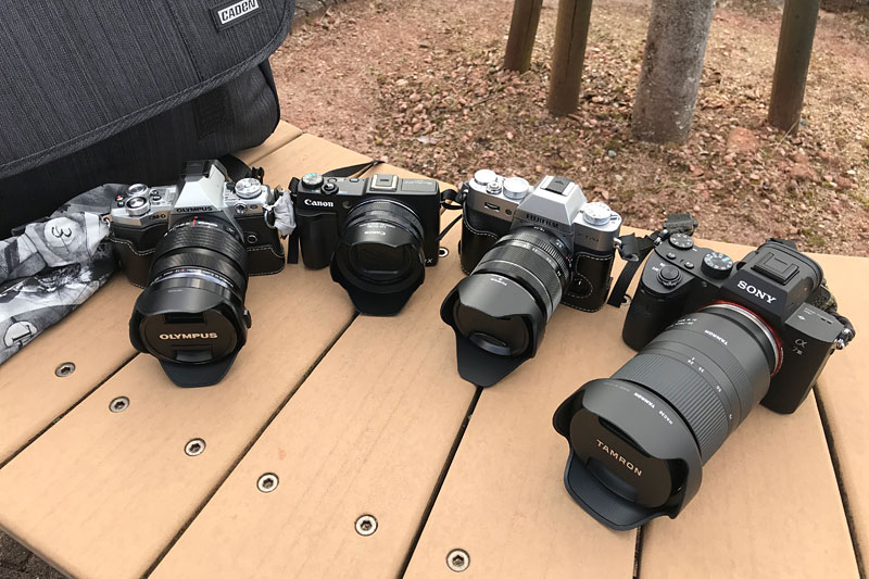 一番不利な「E-M5 Mark II」に「12-40mm PRO」を使うことでどこまで検討するのか、設計が古いとはいえ「G1 X Mark II」にレンズ非交換ゆえの専用設計の有利さはどこまであるのか。