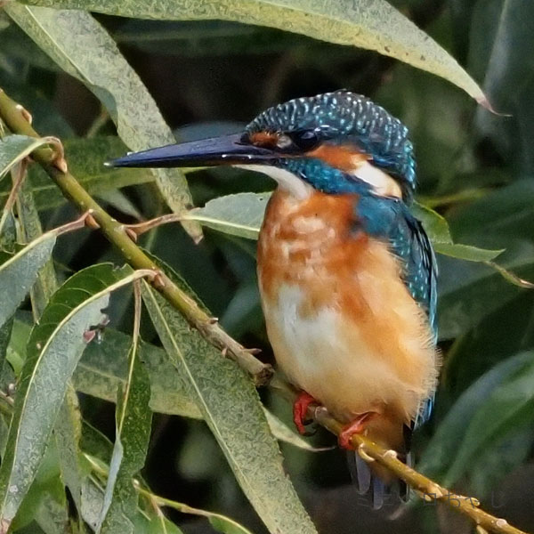 ピクセル等倍切り出し。南エリアのカワセミを追い出した北エリアのカワセミ。このあとは二羽とも行方不明。かすかに聞こえる鳴き声を頼りに探索。