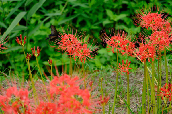 野鳥がいてもいいような小雨だけど野鳥がいない。ここの彼岸花はすでに見頃になってるq