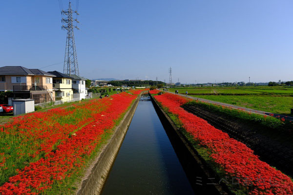 昼の散歩コースの彼岸花が見頃。今日がピークかも。