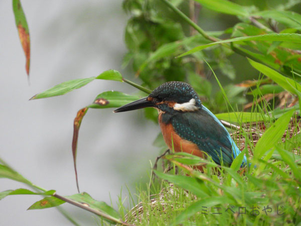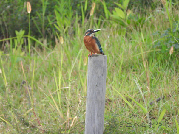 朝から草刈りの人たちが大勢いてカワセミくんはどこかに隠れていた。静かになるとようやく登場。