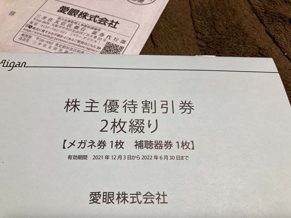 愛眼から株主優待割引券が届いた。暴落した株価も戻してください。