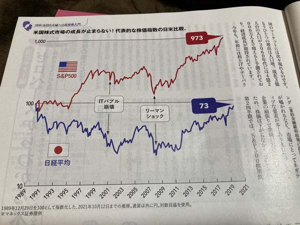 これよーく見ると2000年以前は無かったことにして2002年を基準にすれば日本株は米株と同じような動きをしてるよね。今と昔を比べる時の昔をどこにするのかで解釈が変わる。