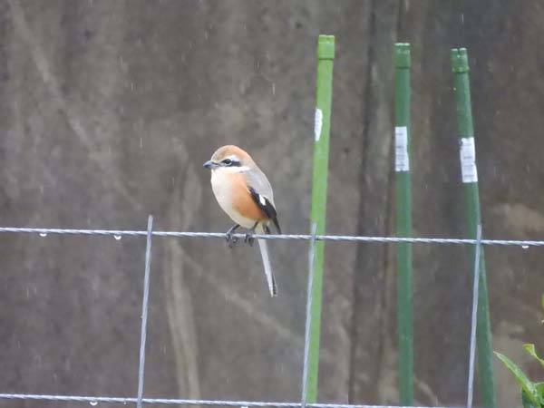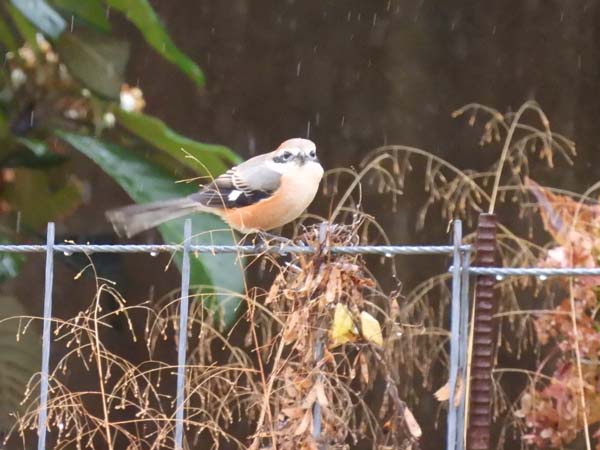 さすがに今日の雨だと野鳥はいないだろうと思ってると、なんと!モズくんが待ってる。いつものオヤジ来ないなぁ。という雰囲気。
