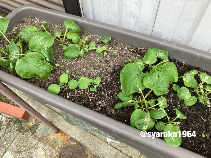 小松菜🥬が大きく育つのを待っていたら痛んでしまった。夏場は無理っぽいです。