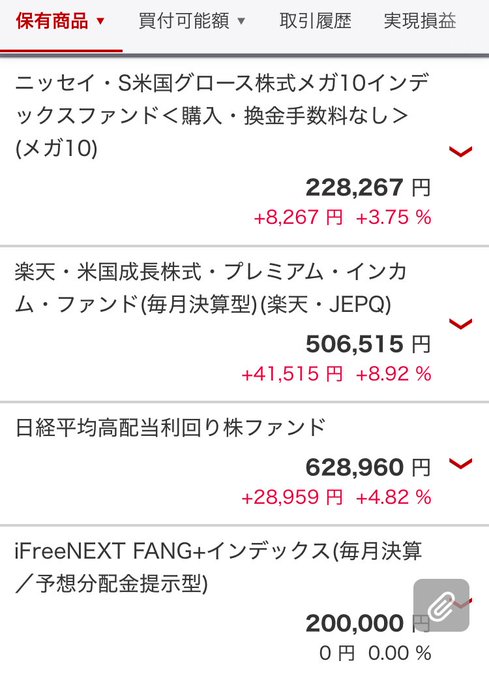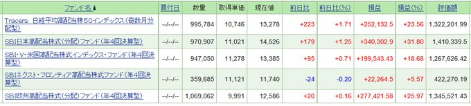 SBI証券側はこのまま放置させて、楽天証券側は基準価額が10000円割っている間は買い増しかな。