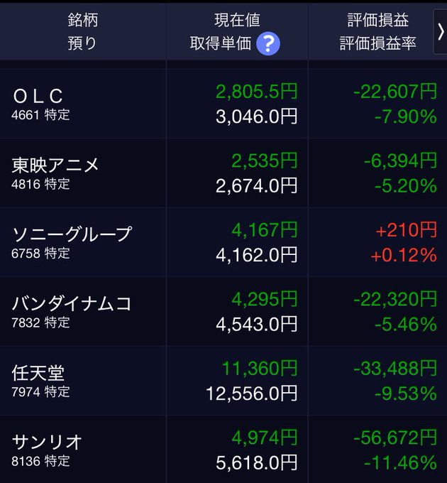 含み損が大爆発してるエンタメ銘柄は次回のエンタメ相場まで持ち越し。