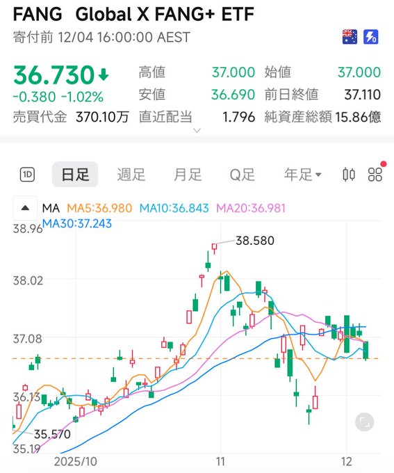 FANG+って直近の急騰後からの下落が止まっていないのか。