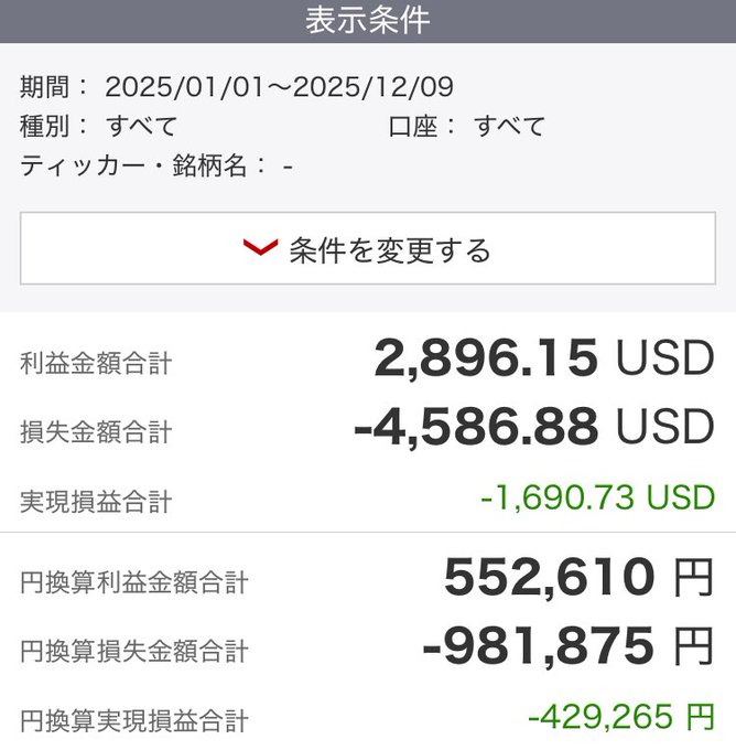 2025年は厳しい一年でした。特に売却益と含み益を両立させるのが難しい。