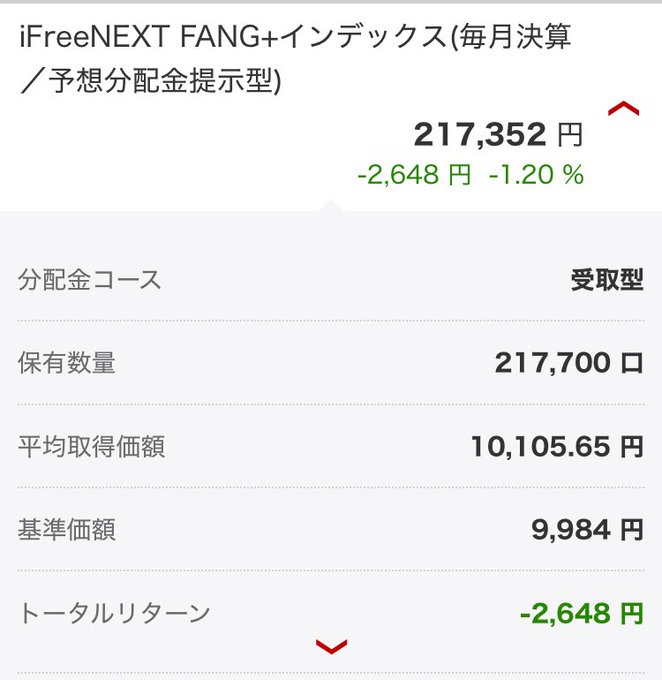 四半期分配型代わりに分配金無しの投信を3ヶ月で決済してるけど、FANG+下落&ドル下落という最悪のタイミングでの売却注文でした。