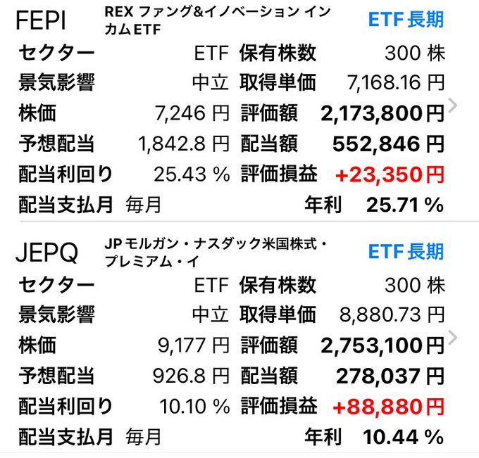 あまりも低いので楽天JEPQとセットにするとちょうど良い。