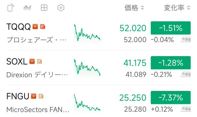 米国株時間外の下げが酷いな。先週金曜日の上げが無かったことになりそう。