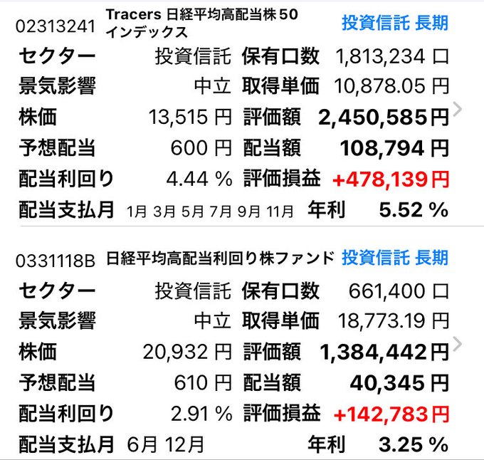 高配当ETFが値上がりしすぎて分配金の利回りが低いので、2026年のNISA枠でこの2本のファンドを買いまくって、含み益が十分にある高配当ETFは売却しようかな。