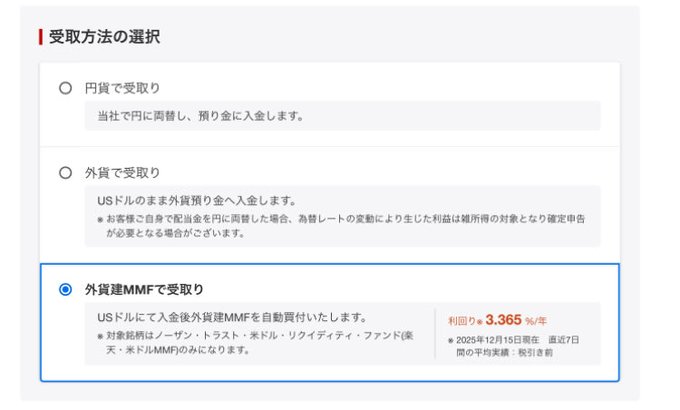 米国株ETFの分配金はここに入れておいて、買い場が来るまで利息をチャリンチャリン貰えば良いのね。分配金が自動的にチャリンチャリン置き場に入るのでとっても便利になった。