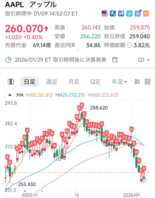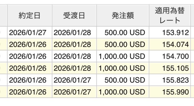 日本時間2026年1月23日(金) 取引分より